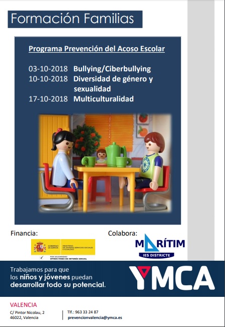 En colaboración con la asociación YMCA, os hacemos llegar la programación de unas sesiones que nos parecen muy interesantes. Las sesiones tendrán lugar los días 3, 10 y 17 de octubre de 17:30 a 19:00h en el Salón de Actos del IES Districte Marítim.
